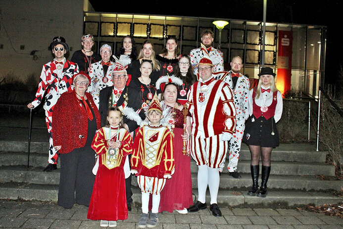 | Saalprinzenpaar 2026 Heiko I. und Jaqueline I. Plumpe | Saalprinzenpaar 2026 Heiko I. und Jaqueline I. Plumpe, Kinderprinzenpaar Tristan I. und Sophia I., 25 Jahre Jubelprinz Gregor I. Dehne und Annelies I. | |
